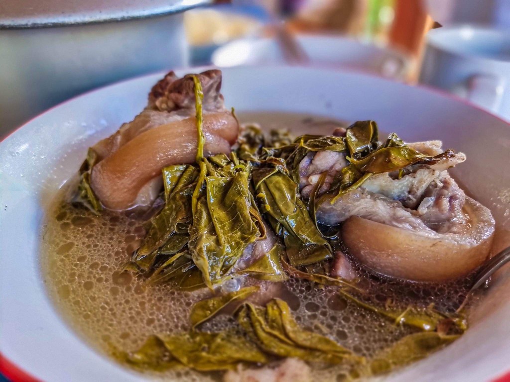 Libas is a tree whose sour fruits and leaves have long been part of local cooking. The young leaves are used as a souring agent in dishes like sinigang and ulang ulang. When added to pork paksiw, they give the broth a subtle, citrusy tang, earthier and more rounded than vinegar alone. It also adds a hint of sweetness to the dish. Their flavor cuts through the fattiness of pork pata and deepens the dish into something truly provincial.
