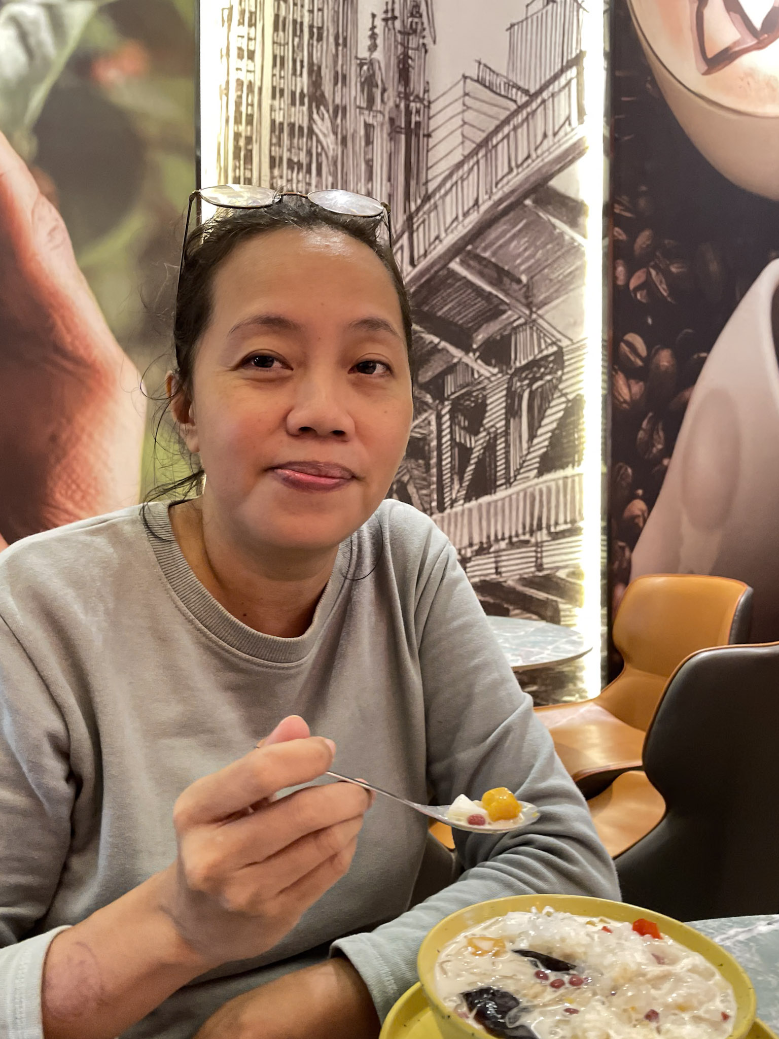 Walking through the bustling streets of Binondo – the world’s oldest Chinatown established in 1594, you’d be overwhelmed by a collision of colors and flavors that reflect centuries of cultural exchange. There’d be the usual dimsum, noodles, and Chinese food. Anyhow, I was wandering around the Lucky Chinatown Mall when I got curious about a modern dessert called Uncle Fish Balls Coffee Collection. They offer a shaved ice dessert described online as featuring taro and sweet potato balls, grass jelly, goji berries, coconut jelly, snow fungus, and milk. I got excited with this because in a single bowl, it captured a confluence of culinary traditions – the sweet tong sui of Cantonese kitchens, the taro ball shaved ice of Taiwan, and the imaginative spirit of Filipino halo-halo and even binignit because it was described as having coconut milk.